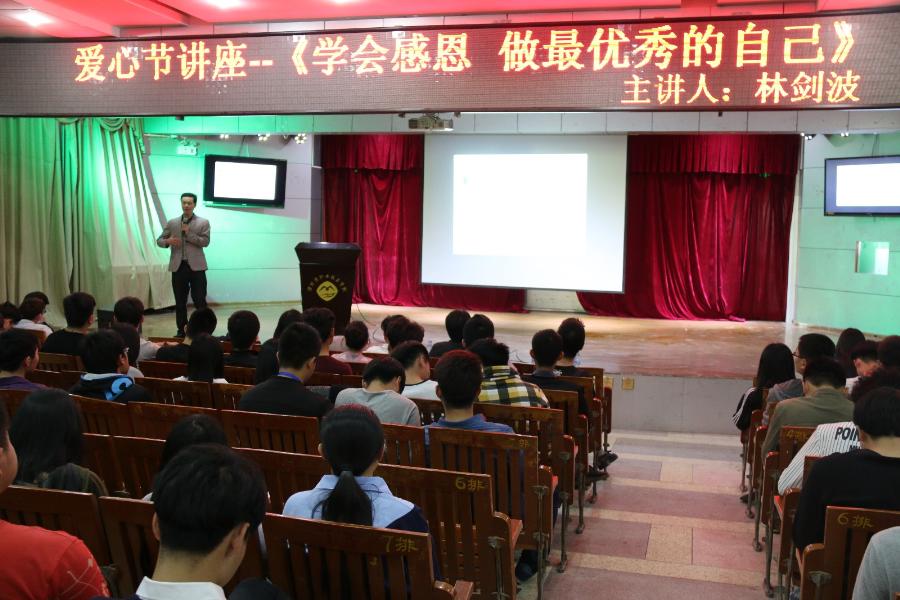 4月19日下午,我院第三届爱心节爱心讲座在17号楼201开讲。本次讲座由莆田市擢英中学林剑波老师主讲,主题为“学会感恩 做最优秀的自己”。共有400余名师生聆听讲座。讲座伊始,林老师引用《佛经》中“前生五百次的回眸,换来今生的一次擦肩而过”,...