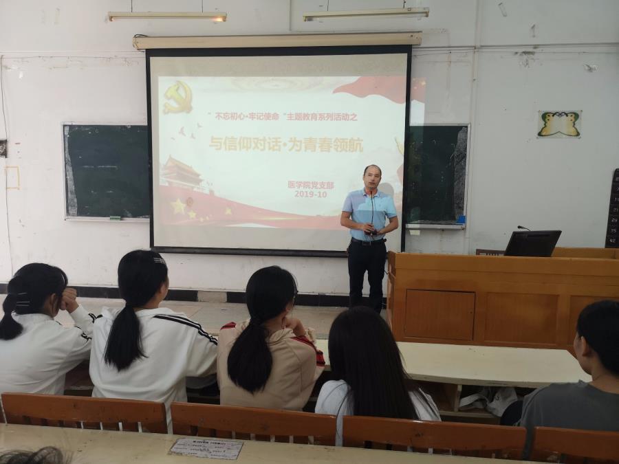 激扬青春正能量,唱响时代主旋律,让中国梦激扬青春梦,让青春梦助力中国梦,祖国,我爱你!值此新中国成立70周年的重大时刻,为厚植广大青年学子的爱国情怀,激发青年学子的报国热情。2019年10月13日,医学院党支部书记林俊老师在17#203为同学们上了...