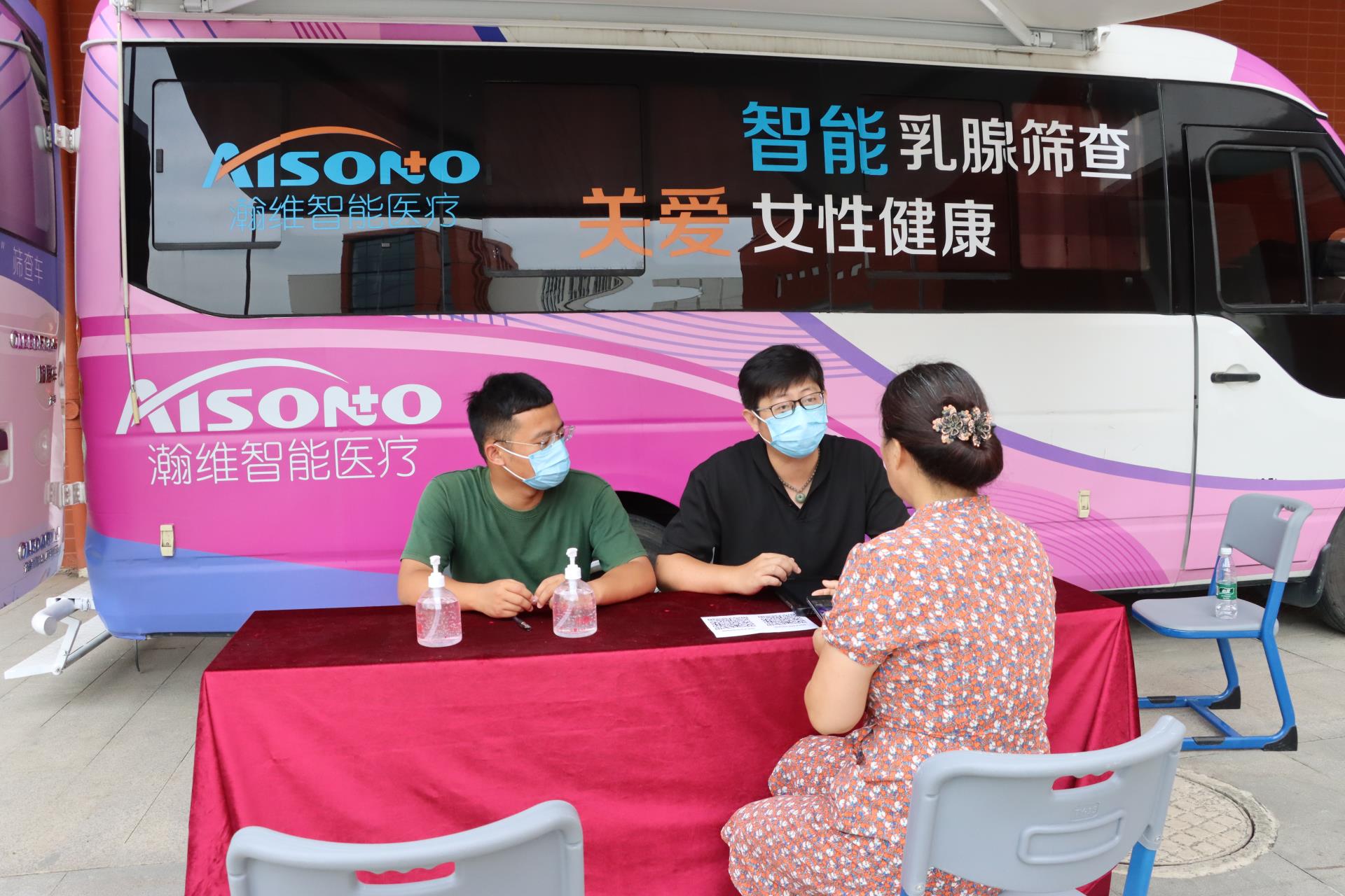 笔者见到,公司把超声机运送到墨香广场,免费上门服务。工作人员做好信息登记、项目检查、归档汇总等服务,并向参检教师分发乳腺健康宣传手册,介绍了乳腺相关检查的知识,普及女性健康知识,让大家了解如何预防乳腺癌并树立“防”重于“治”的健康理念。