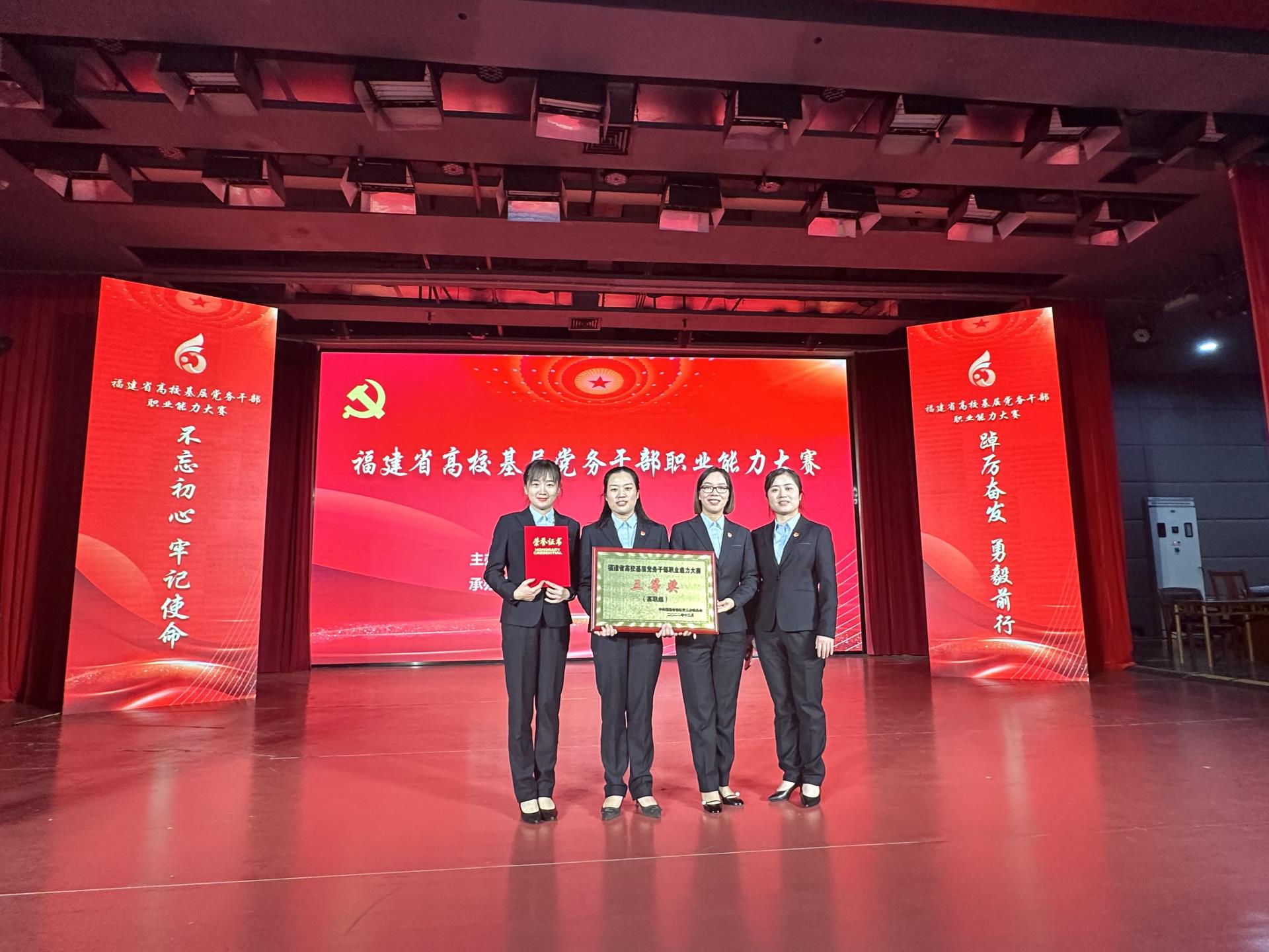 1213,福建省首届高校基层党务干部职业能力大赛落幕,湄洲湾职业技术学院3名选手一路努力奋斗、团结拼搏,在全省高职院校中脱颖而出,分别获得团体和理论知识测试单项奖第6名的好成绩。学院党员干部也以此次比赛为新的起点,进一步深入学习宣传贯彻党的二十大精神,充分发挥基层党组织的战斗堡垒作用,为学院高质量发展贡献力量。
