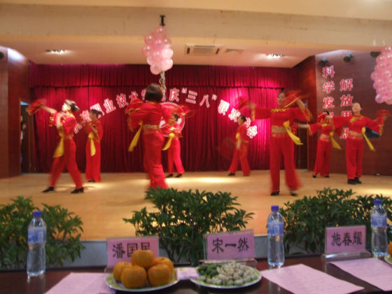 参加晚会的有院领导以及院全体女教职工和家属等。晚会以喜庆的秧歌拉开序幕,在独唱、合唱、朗诵、时装秀、笛子独奏、瑜珈表演、抽奖等热闹温馨的气氛中进行。