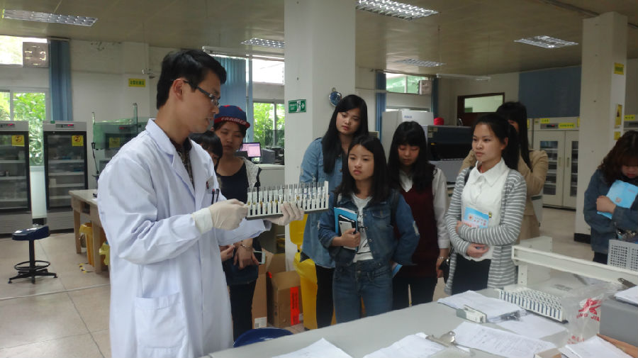 下午3点,我们到达血站后,工作人员了解了我们此次之行的目的,之后便带领我们进楼参观。首先,在血站二楼,工作人员为同学们介绍了无偿献血的发展历程,并详细介绍了血站采血工作流程及血站各科室的作用。讲解过程中,工作人员着重强调了无偿献血的权利并声明献血不会感染疾病。随后,工作人员带领我们参观了解血液样品采集到临床应用的详细流程及各个科室的血液加工操作程序,并对同学们提出的疑问做出了详细解答。最后,血站工作人员和同学们拍照合影,并表示欢迎同学们下次到来。