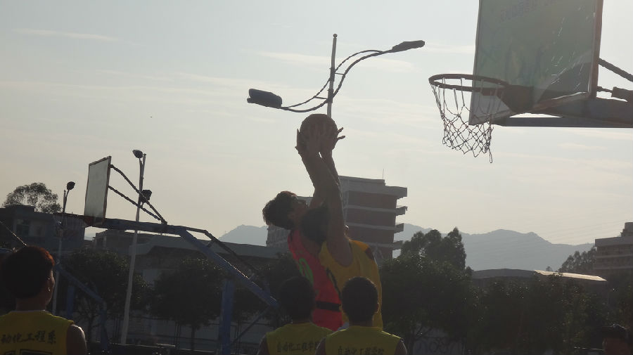 2015年6月15日下午4点半,我院各院系篮球赛总决赛在实训楼旁篮球场举行。进入总决赛的有四个队伍,分别是机械工程学院VS自动化工程学院、工商管理学院VS建筑工程学院。