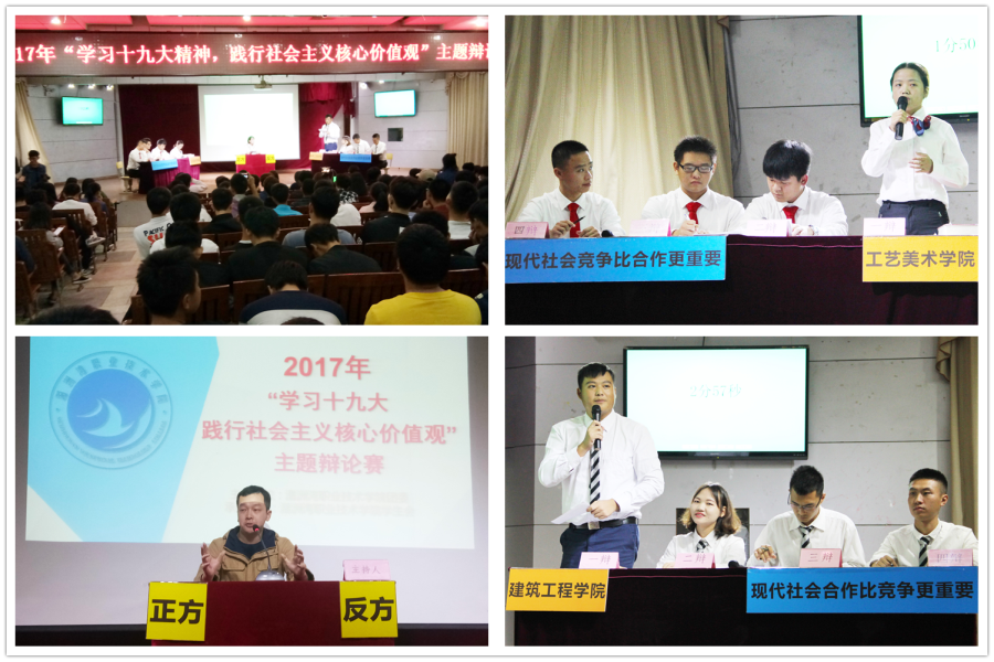 10月31日晚7点,我院“学习十九大精神,践行社会主义核心价值观”主题辩论赛在17号楼201拉开了帷幕。工艺美术学院连超凡老师、学院办公室任琳琳老师、李慧颖担任此次评委。首个比赛日由工艺美术学院对阵建筑工程学院,双方围绕“现代社会竞争比合作更重要还是合作比竞争更重要”展开辩论。