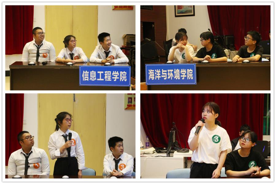 比赛开始,由信息工程学院vs海洋环境学院。双方的参赛选手正蓄势待发迎接第一轮挑战必答题。这一环节是双方轮流作答,在作答过程中,双方的实力是不相上下,第一轮必答题双方的成绩分数相差不大。紧接着第二轮挑战的抢答题,场上气氛变得越来越凝重,观众也为双方选手各自捏把汗,在抢答中,信息工程学院几乎是屡战屡胜,也更是越战越勇。相反海洋环境学院气势逐渐减弱,两方的分数差距不断拉开。来到了第三个环节问答题,围绕莆仙文化及妈祖精神展开问答,信心十足的信心工程学院沉着冷静,面对问答题临危不惧的回答,而海洋环境学院更为紧张,答题并不理想,第三轮挑战,信息工程学院获胜。为了缓解场上的气氛,最后一环节观众助阵题,由双方选手选择现场观众来作答,作答正确者将获得小礼品,被选中的观众也不负众望的给出了满意的答案。层层挑战,最后由信息工程学院以135:15的惊人成绩夺得了本场比赛的冠军。