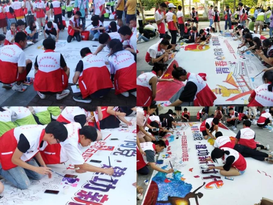 一支画笔,勾勒爱国情怀;一幅画卷,尽展青春本色。6月15日下午,湄职院近200名青年学子齐聚图书馆广场,执笔共同绘制百米长卷,为新中国成立70周年暨五四运动100周年献礼。
