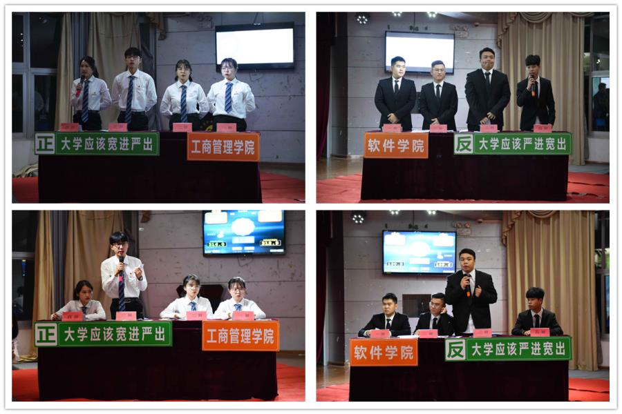 11月26日晚7点,我院团委在17#201小礼堂举行新生辩论赛决赛。经过初赛、半决赛的激烈角逐,工商管理学院和软件学院两支队伍成功进入今晚的决赛。以“大学应该严进宽出还是宽进严出”为论题展开辩论。由胡晓虹老师、陈志君老师、郑元清老师、王愉航老师、郑志颖老师担任本场比赛评委。