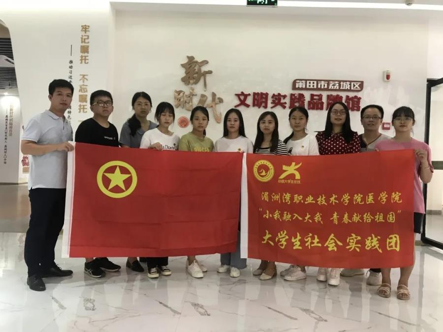 为深入学习宣传贯彻习近平新时代中国特色社会主义思想,扎实推动实践育人,坚持理论教育与实践养成相结合,教育引导大学生在亲身参与中树立家国情怀、增强实践能力,经风雨、见世面、壮筋骨、长才干,激励广大青年努力成为担当民族复兴大任的时代新人。8月7日,医学院“小我融入大我 青春献给祖国”大学生暑期社会实践团赴莆田市荔城区开展社会实践活动。