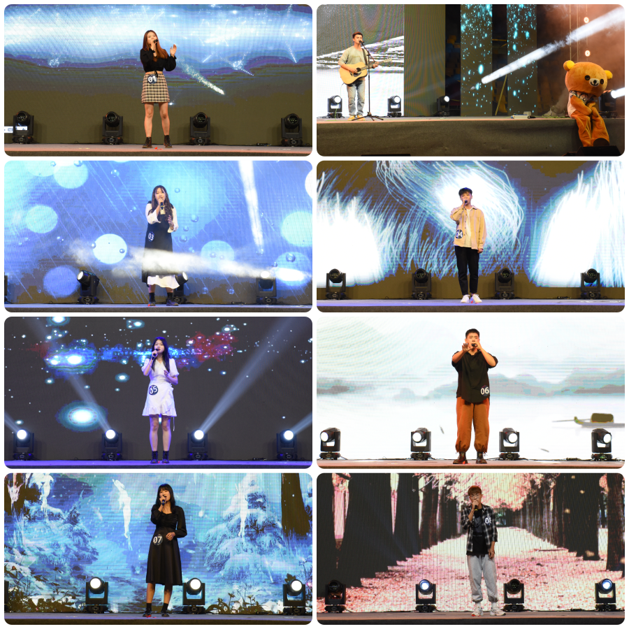 由中医192班的叶玲同学带来一首《我们的爱》拉开了比赛的序幕。优美的旋律,动听的嗓音让我们仿佛置身于寂静的夜晚,感受着那份宁静。林永攀的《10.8》让我们陷入了沉思,感慨着时间带给我的思考;还有邱雨佳的《有一种悲伤》和阮子龙的《消愁》让人为之动容…一首首悦耳动人的歌曲让观众如身临其境般步入歌曲中唯美的场景。机械工程学院带来的快闪更是给观众们带来无限的惊喜。选手自选曲目风格迥异,流行歌曲的演唱,简单明快的蓝调,调动了在场观众的热情气氛,参赛选手的镇定自若,对歌曲的演绎和台风,展示了他们更强的实力。