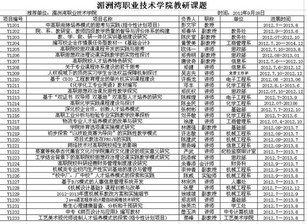 在专家评审的基础上,学院学术委员会于2012年9月28日,对科研所提交的申报院级立项的教研课题进行评审表决,有33个教研课题获得立项,现予公布。请课题负责人填写任务书,并于2012年10月20日前,将电子文档发至mzykys@126.com邮箱