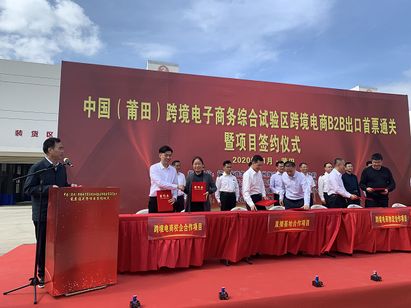 2020年11月2日,中国(莆田)跨境电子商务综合试验区跨境电商B2B出口售票通关暨项目签约仪式,再莆田市跨境电商监管中心举行,标志着中国(莆田)跨境电子商务综合试验区监管中心园区正式揭牌运行,跨境电商出口“9710”“9810”模式正式落地莆田。
