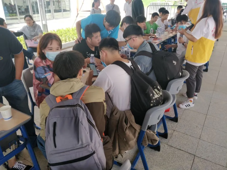 报到期间,院系领导自动化学院全体辅导员老师都来到报到处问候20级新生,参与指导迎新工作。