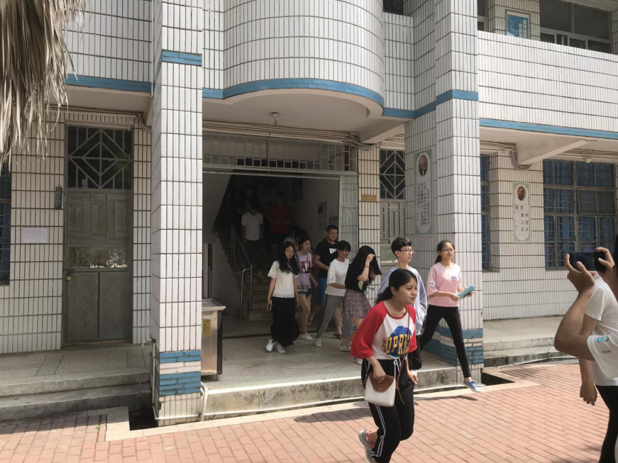 当日上午9时40分,急促的警报声突然响起,学生们迅速蹲下身,双手抱头依靠桌子掩护。随后在老师的指挥下,迅速有序地进行紧急疏散,用最快的时间“撤离”教室,前往学校的“安全地带”。整个过程紧张规范有序,教学楼与实训楼各楼梯口都有老师维持秩序,我系百余名学生全部疏散完毕,用时不到三分钟。