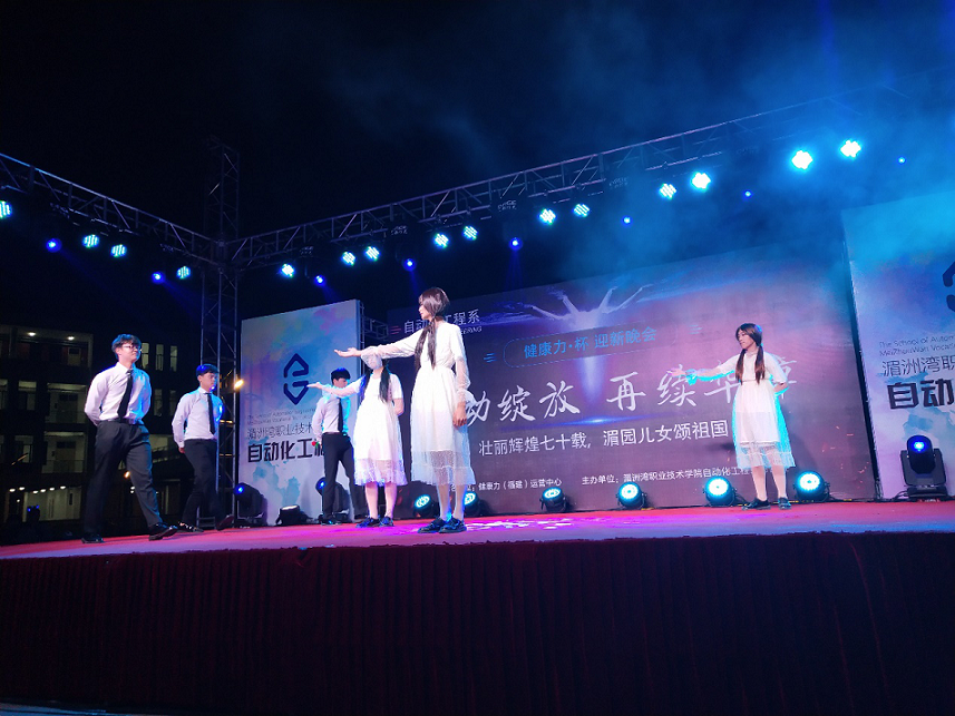 为迎接19级新生的到来,展现我自动学子风采,自动化工程系分团委学生会主办的"自动绽放 再续华章"为主题的迎新晚会于2019年12月24日晚7点,在墨香广场盛装开幕。自动化工程系党总支书记陈满红、组织员杨娴、分团委书记黄丽丽、辅导员朱长山、陈静宜及各位领导和全体新老生共同参加此次晚会。晚会由两位帅气主持人沈浩彬、林鑫鹏和两位靓丽主持人蔡小玲、易嘉慧共同主持。