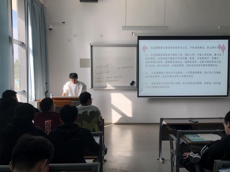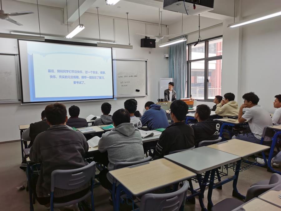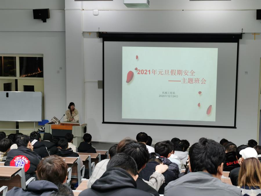 元旦假期即将来临,为增强学生安全意识,让我系师生过一个愉快而又充实的假期,杜绝假期期间学生一切非正常事故的发生。2020年12月24日,机械工程系在信息楼南205、公教一楼等各教室开展了元旦假期安全主题教育活动,各会议由辅导员朱菡及各班级班长主持。