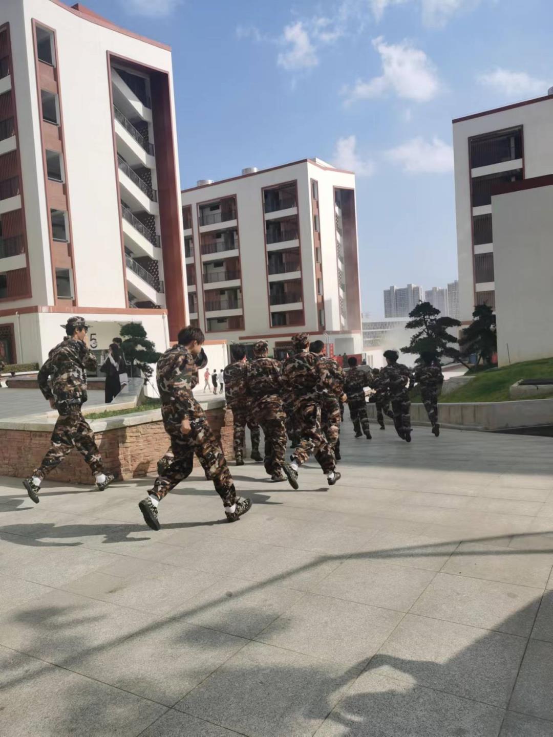 一阵急促的警报声拉开了“消防应急疏散灭火演练”活动的帷幕,听到警报声,各位老师立即到达指定岗位,指导学生快速疏散,学生弯着腰、猫着步,捂住口鼻,沿着学校指定楼梯口快速前进,有序撤离到学校400米操场的平安地带,随即各班长清点人数,并层层向上汇报。