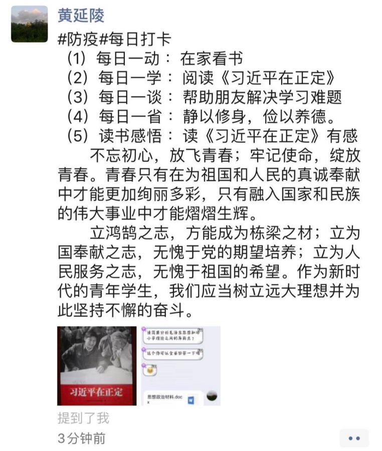 博尔赫斯在《探讨别集》中说到:“经典作品并不是一部必须具有某种优点的书籍,而是一部世世代代的人出于不同理由,以先期的热情,和神秘的忠诚阅读的书。”书籍在手,感悟盈心。正所谓“学而不思则罔,思而不学则殆”。化学工程系开展了一场有关书籍的化”样打卡,“工”抗疫情活动。