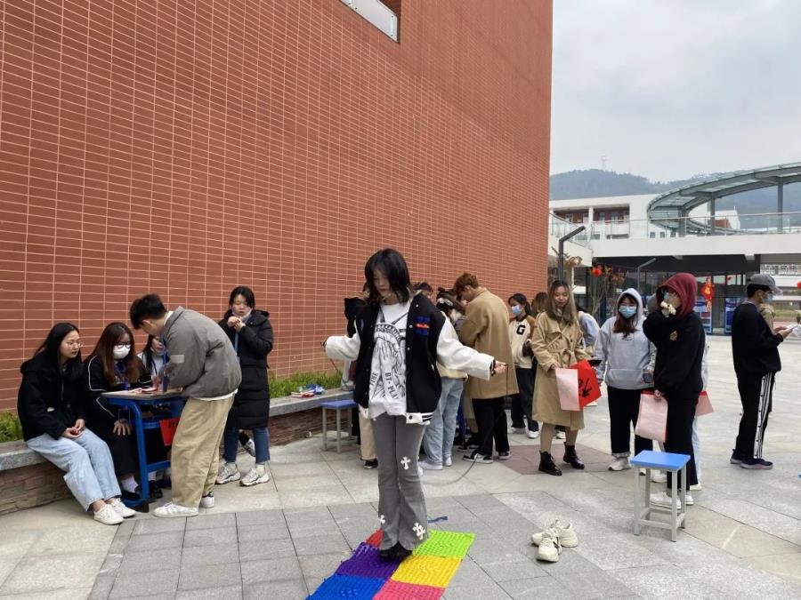 准备一个乒乓球和一个乒乓球拍,参赛者将乒乓球平放在乒乓球拍上,延着两张桌边沿8字绕圈,绕两圈就可以获得一枚印章。看着同学们脚步稳健,屏住呼吸,平稳行走,和乒乓球斗智斗勇,生怕乒乓球掉下来。好在最后也是成功完成了八字绕圈并获得了章印。