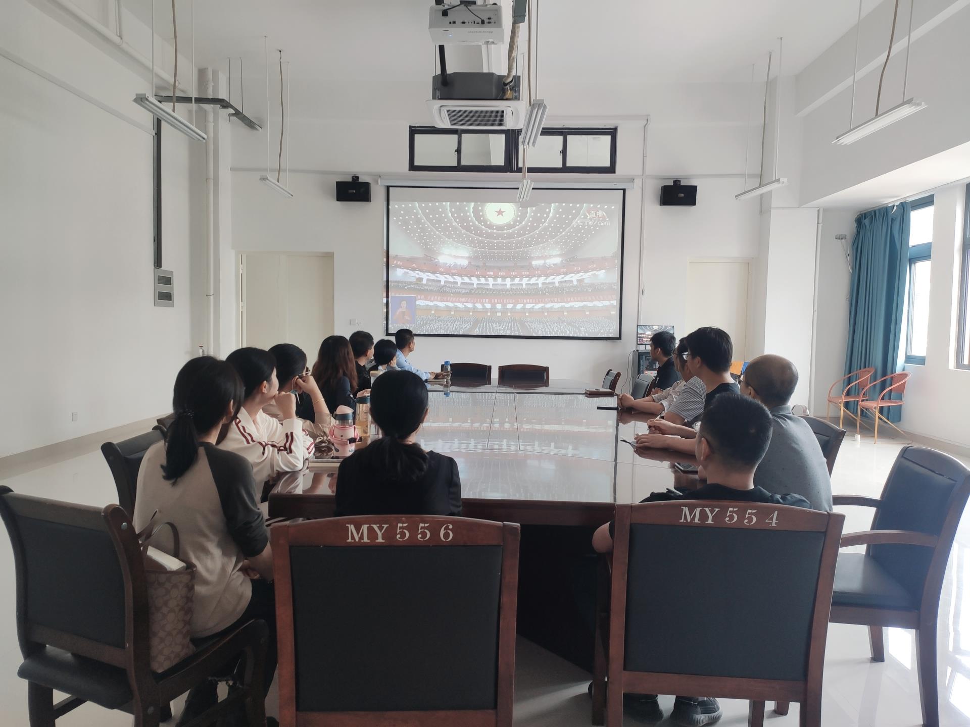 化学工程系领导、教师在化工楼党员活动室北310观看