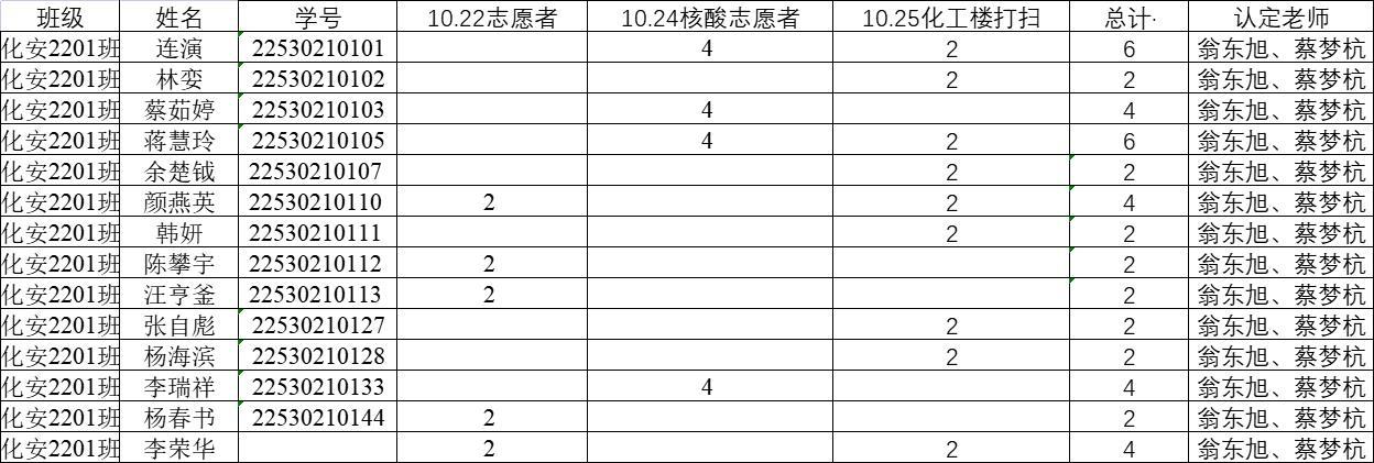 化学工程系10月份(10月22日~10月30日)志愿时长认定表来咯~