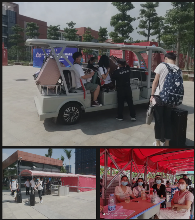 进入校园后,有校车帮忙学生搬运行李至宿舍门口。各位老师们也一刻没有停歇,来回奔赴在第一线,共同迎接着同学们的归来。