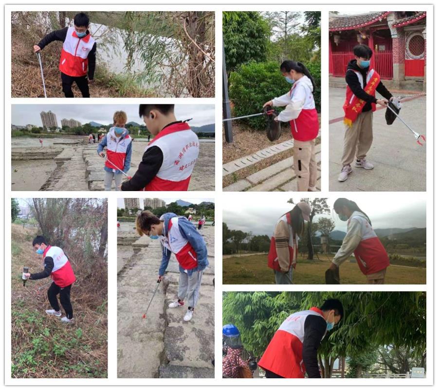 志愿者们在建筑工程系分团委书记范健健老师和李林霞辅导员的带领下,在木兰陂生态主题公园内,手拿垃圾袋、夹子等工具,将公园内的果皮纸屑、烟头塑料等各种垃圾收集在袋子中。大家三两组合,沿路清扫。