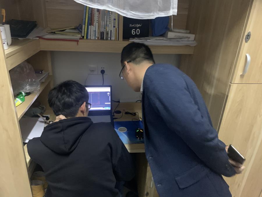 看到课后还在努力学习的同学,书记与辅导员纷纷露出欣慰的目光。陈建武书记更是直接开始了线下小课堂,为同学们答疑解惑。还和同学们分享了年轻求学时的经历,同现在得学习生活相比,感叹同学们都生在一个好的时代,因而更要刻苦学习,珍惜现在优越的条件。