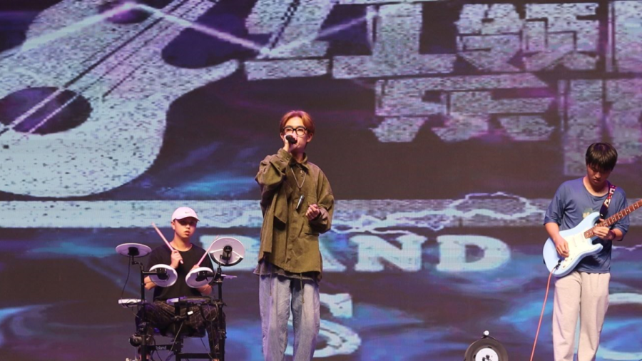 晚会有序的进行着,很快就来到了由湄洲湾职业技术学院“红领巾乐队”的蔡毅涵、林榕等同学带来的音乐演奏《无人的海边》,将晚会推向高潮。