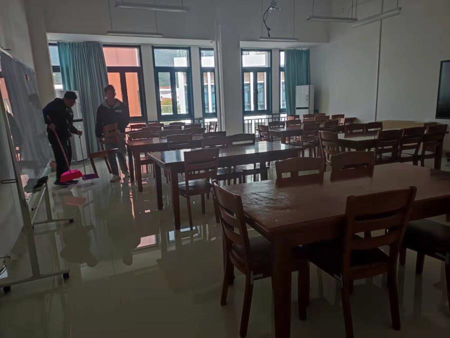 2021年12月28日建筑工程系劳动周打扫地点主要是建筑楼的一楼至四楼的教室及其走廊和过道和草坪。同学们拿着劳动工具来到打扫地点,扫地、拖地、摆桌子、擦窗户……大家在生劳委员明确的分工安排下各司其职,尽心尽责,劳动的身影在初秋暖阳下的教学楼里穿梭。