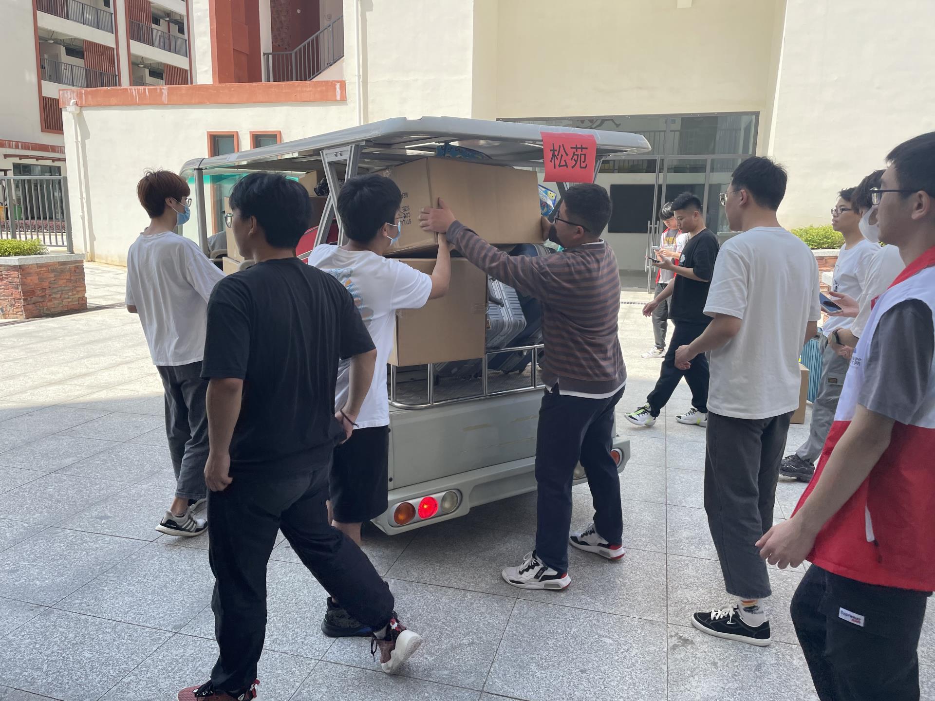 我系志愿者们帮助同学们一起搬运物品、清查宿舍,及时解决同学们在宿舍调整过程中出现的各种问题,整个搬运工作进行得有条不紊、高效有序,在烈日炎炎的天气下,经过反复搬运,志愿者们的衣服早早被汗水浸透,但他们仍以饱满的热情继续投身于行李打包搬运中去。搬迁的过程中,我系志愿者们展示了“不怕苦,不怕累”的精神,以实际行动诠释了“服务群众”的意义。
