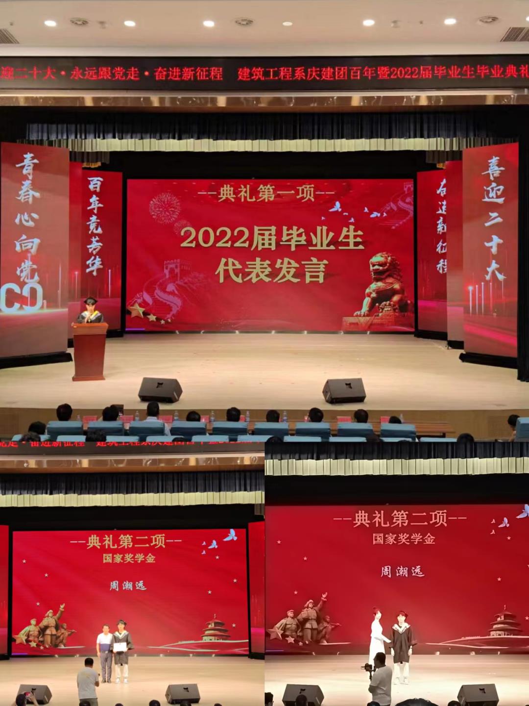 典礼开始,由建筑工程系陈良金主任为毕业学子致毕业贺词,希望毕业生们尽快适应新工作、新环境,继续学习,增强能力,最后祝愿同学们前程似锦。