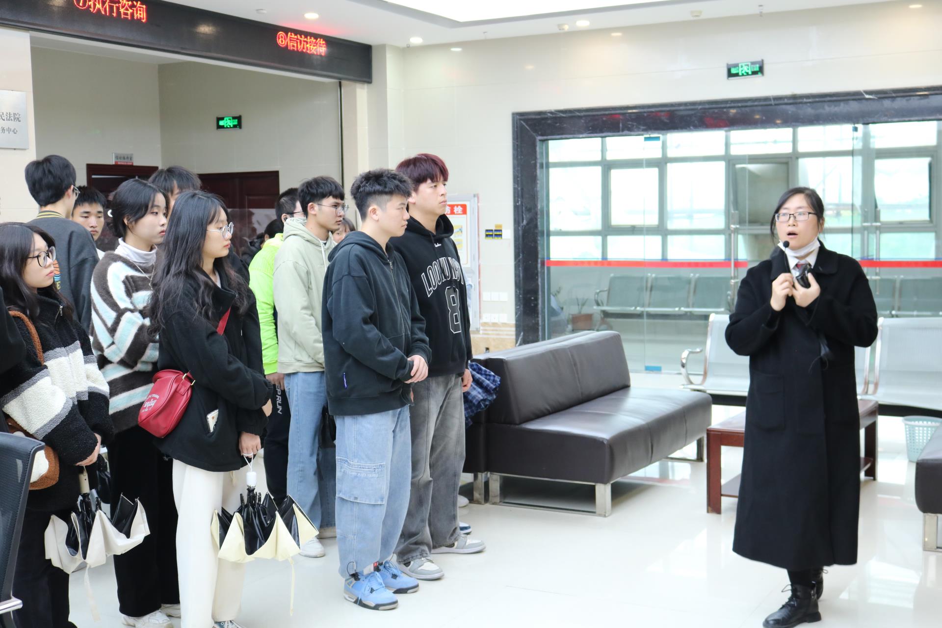 活动开始,在讲解员的带领下,众人一起参观了法院诉讼服务中心、法庭调解警务室、审判法庭等场所。同学们了解了诉讼服务中心的设施、功能和特点的同时,学会了法院立案等有关流程和相关便民服务举措。