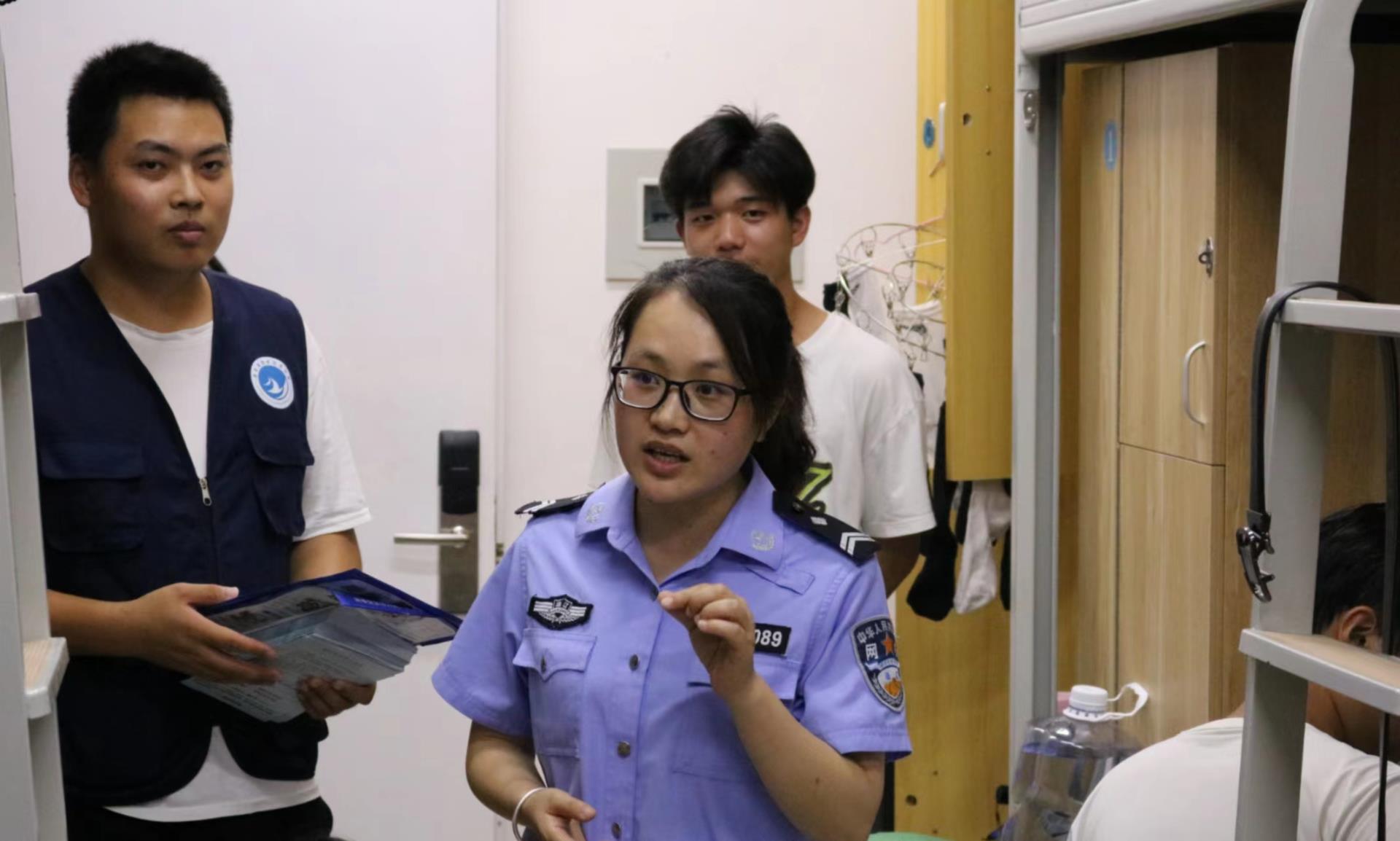 为进一步提高大学生防范诈骗的意识,有效预防电信网络诈骗案件的发生,维护校园安全,有效筑牢校园防诈反诈“防护墙”。2023年6月13日,我系安全员陈辰君老师和梧塘派出所民警深入学生宿舍为学生进行反诈宣传,以新形式和多举措向同学们宣传反诈骗相关知识,将反诈宣传落到实处。