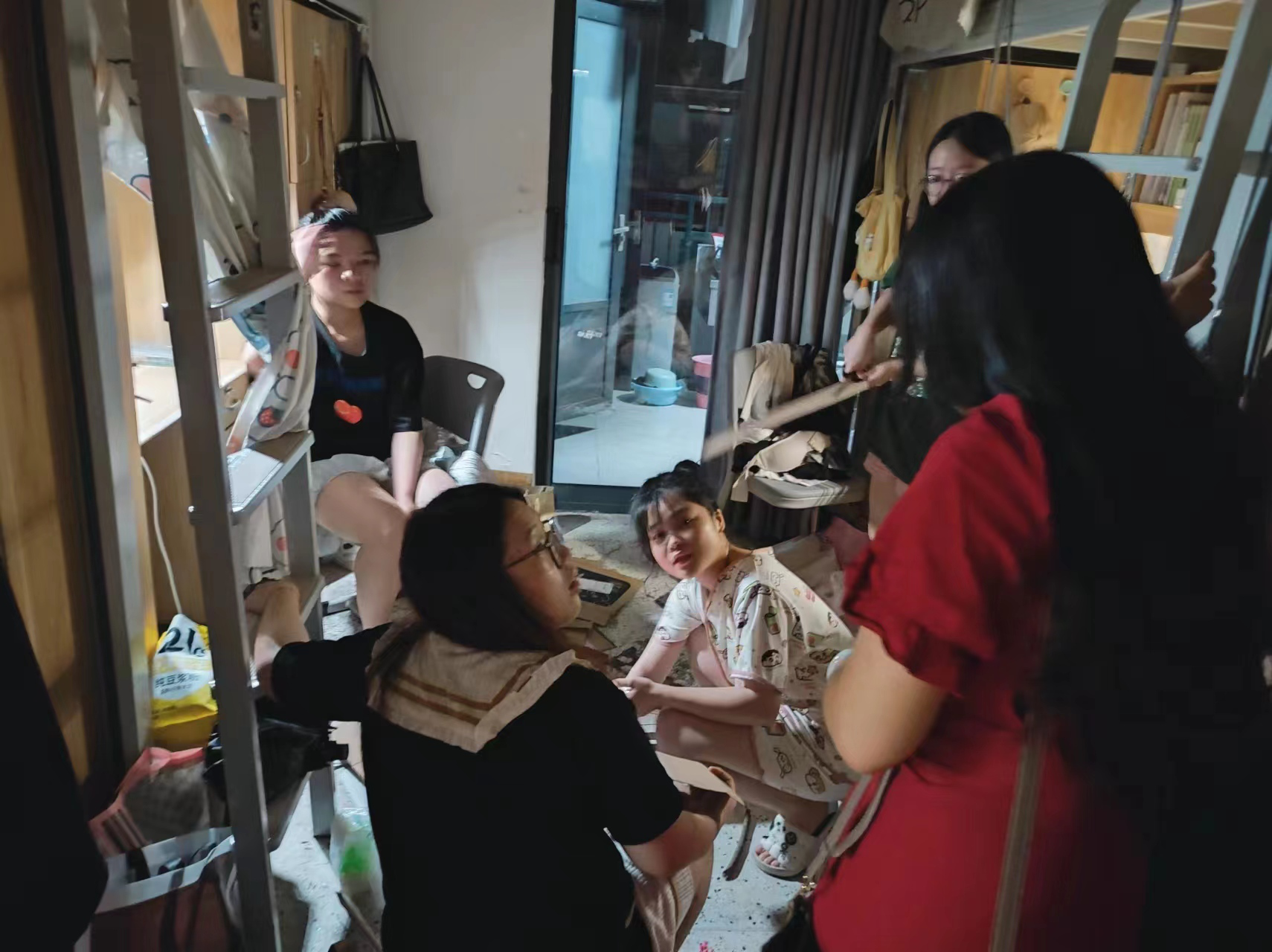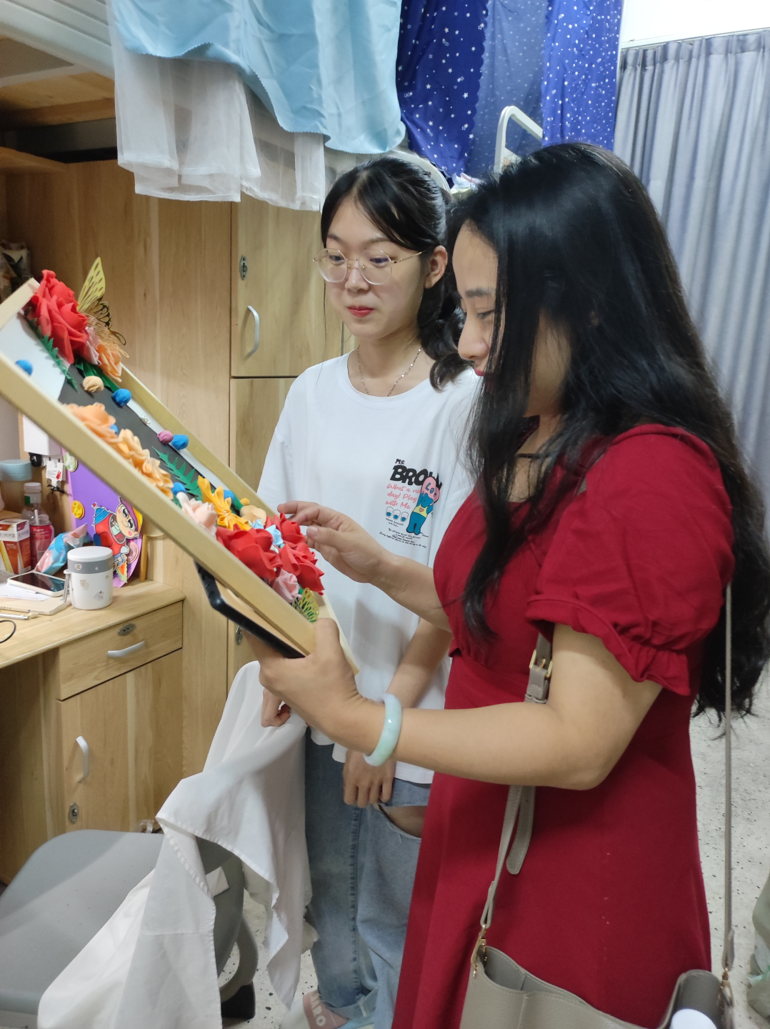 辅导员谢雪玲老师走访每一间宿舍,热切与学生交流讨论,缓解学生期末及幼儿园实习准备期的压力,帮助学生端正学习态度,全力备战创新创业比赛或技能、理论的期末考试,并以饱满的热情、良好心态迎接毕业实习。对于同学们的作品,取得的成绩以及班委模范引领作用给予充分肯定。鼓励学生明确学习目标,扎实专业知识,还不忘提醒她们关注幼儿教师资格证的报名信息,树立自律意识,充分利用暑期宝贵时间复习,以期都能“持证上岗”顺利就业。