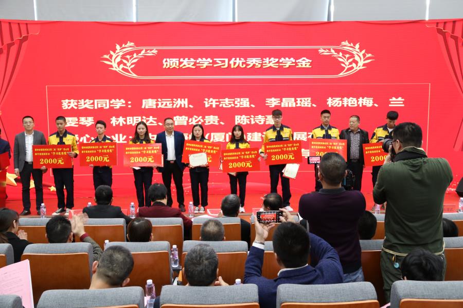 仪式上,湄洲湾职业技术学院、市建筑业协会联合为爱心企业、企业家颁发荣誉证书和奖牌。