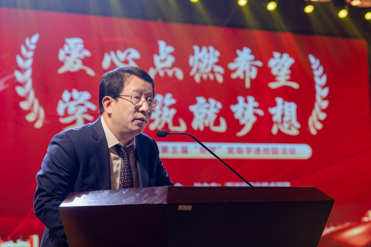 福建巨岸建设工程有限公司总经理黄国忠代表爱心企业致辞。“有花堪折直须折,莫待无花空折枝”,希望各位建筑学子们勤勉刻苦,学有所成,踌躇满志,不负年华。