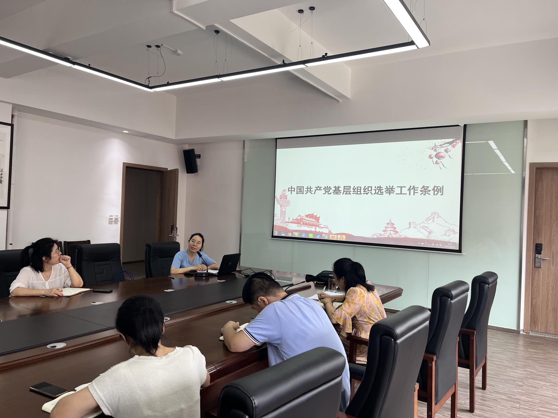 再接着,会上针对上月布置的工作落实情况进行通报,并布置本阶段的重点工作。然后,与会人员现场参加线上的“中国共产党基层组织选举工作条例”专题闭卷考试。