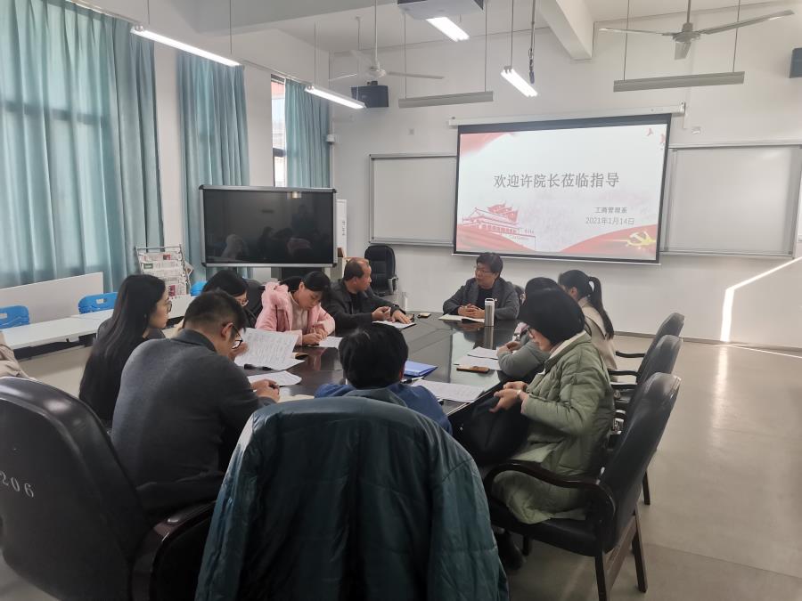 2021年1月14日,学院院长许冬红莅临工商管理系指导工商第一党支部开展2020年度组织生活会及民主评议党员工作。系第一支部书记黄智萌主持会议,支部全体党员出席会议。