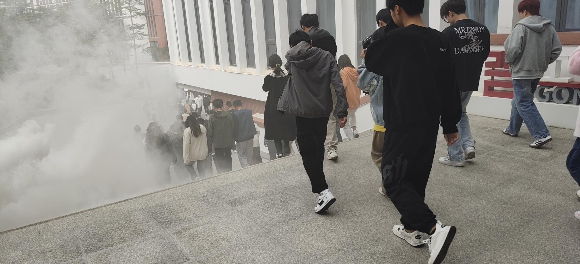 上午9:50,随着消防警报响起,教师们迅速组织学生有序离开教室,沿着指定的疏散路线撤离到安全地带。同学们纷纷捂住口鼻,沿着走廊快步前进,有序地撤离到墨香广场。整个疏散过程仅用了不到5分钟的时间,达到了预期的效果。