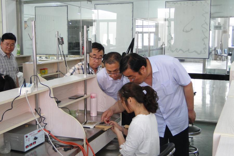 考察团一行参观了工艺美术学院实训中心,详细了解现代产业和职业教育如何更好地融合等情况,在听取相关情况介绍后,考察团一行对工艺美术学院校企合作、专业建设等方面取得的成果表示赞赏,并希望进一步加强双方合作,促进双方共同发展。