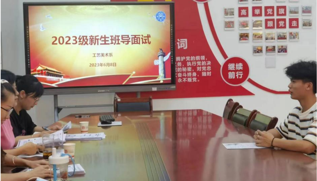 6月8日,工艺美术系组织开展2023级新生班导选拔面试工作,工艺美术系林秋香老师、李小英老师,林亚婷老师,黄金峰老师对40位申请同学进行了面试。