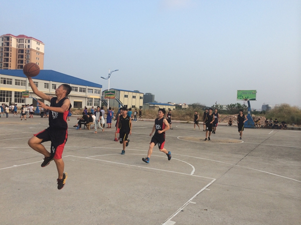 9月27日下午,篮球场上进行的是工艺美术学院与中专校的篮球赛。
