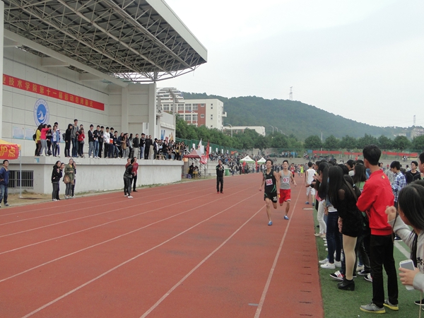 在男子100米决赛中,工艺美术学院的杨振鹏又以11秒17的好成绩破学院纪录,获得第一名;杨立强获得第四名。