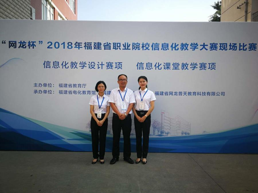 图二 林露华、徐建、张霞老师 “网龙杯”2019职业院校信息化教学大赛获得二等奖佳绩