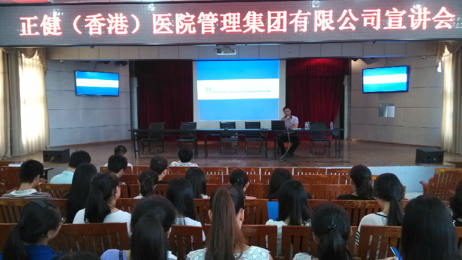 本次会议的主要对象为工商管理系会计专业的学子们,本场宣讲会的主讲正健集团的人力资源总监郑秋红向同学们详细地介绍了民营医疗的发展前景。正健(香港)医院管理集团有限公司已在北京、石家庄、成都、青岛等地形成连锁医院。他还介绍正健(香港)医院管理集团有限公司的概况、企业文化、经营特色、专家团队并说明本次校企合适所招收的员工要求及福利待遇。会议最后,我院主任希望大家能够慎重考虑,不错失机会也不盲目选择。