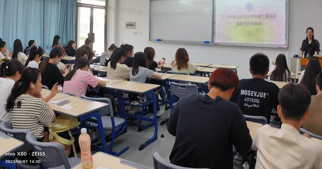 为了加强大数据与会计专业的同学对个人所得税综合所得年度汇算清缴的理解及为日后走上工作岗位做准备。5月31日下午,我系在公教一北102召开由工商系大数据与会计专业主任陈丽琴主讲的“个人所得税综合所得年度汇算清缴指导及新政解读”主题讲座。