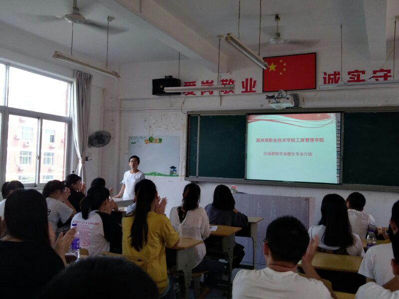 到会的营销专业老师有严彬彬老师和谢小兰老师,严彬彬老师勉励大家好好正视自己,好好学习,好好生活,谢老师勉励大家要明白为什么来上大学,到大学要做好三年规划。