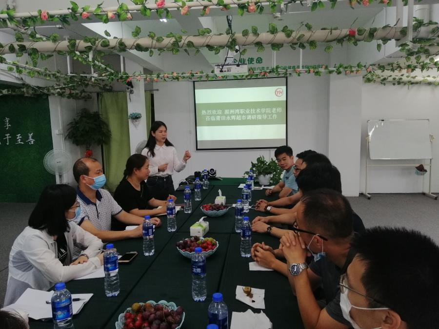 2020年5月28日,工商管理系主任方丰霞、系党总支书记林宗洪、市场营销教研室主任黄智萌、物流教研室主任徐建、会计教研室主任郑宗旭、实训中心主任洪黎敏、营销专业教师陈丽晶等一行前往莆田永辉超市与永辉莆田区区总陈永城、莆田区城荔城北店店长郑诚钦、莆田区涵江水韵城店店长蔡建明、莆田区荔城北店后勤小店长许丽娇、永辉一战区校企合作项目经理王建姬开展调研交流。