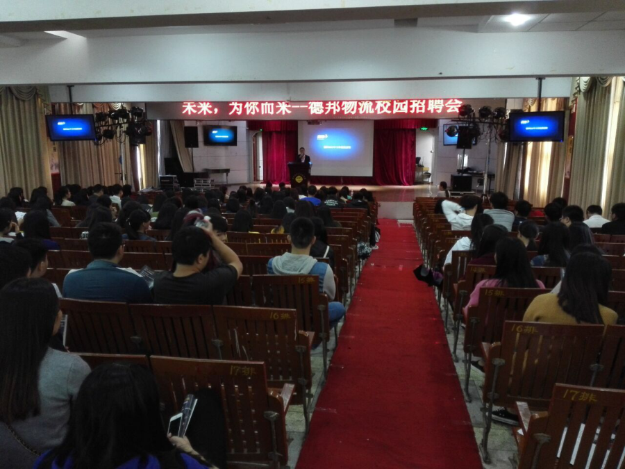 11月23日上午10:00,在17#201会议室举办了隆重的德邦物流2016年校园招聘宣讲会。参加会议的有德邦物流莆田大区人力资源总监游经理、招聘部罗经理等一行四人,我系出席会议的有工商管理系副主任方丰霞、会计教研室主任傅若惠、物流教研室主任徐建及工商管理系2014级应届毕业生。