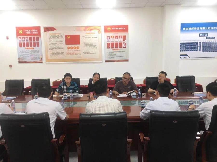 2021年5月7日上午10点30分,湄洲湾职业技术学院工商系主任方丰霞带领副主任徐建、物流教研室主任林露华、实训中心主任洪黎敏及行政秘书朱晓宇一行5人来到莆田盛辉物流有限公司开展调研。